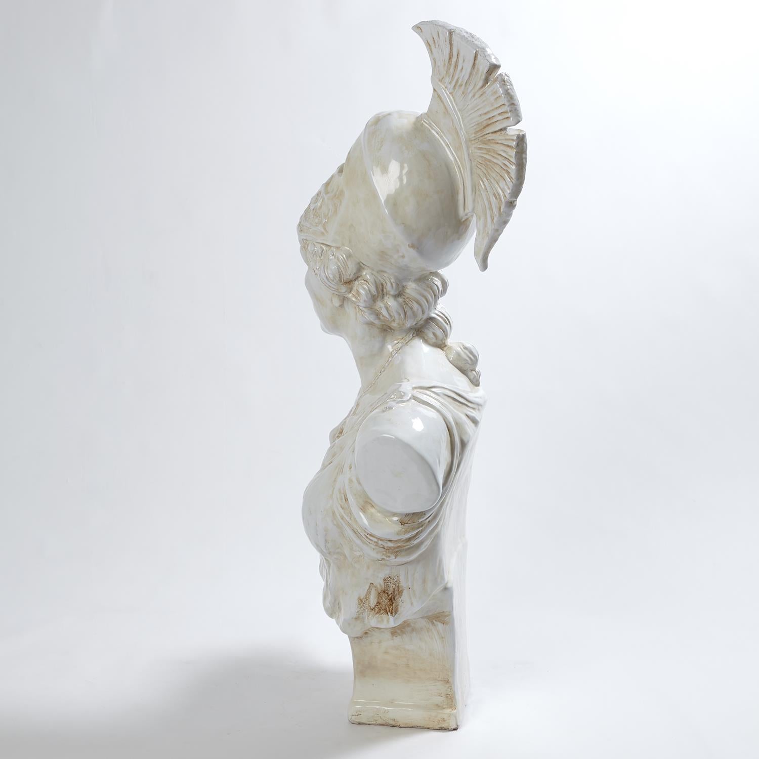 George Sellers created Athena by hand carving it from clay; a plaster casting was then sent to Italy for production in ceramic. The original, thought to be from the 4th century BC, is on display at the Louvre in Paris, France. Athena was the Greek goddess of many things: wisdom, courage, inspiration, civilization, law and justice, just warfare, mathematics, strength, strategy, the arts, crafts and skill. Minerva is the Roman goddess equivalent of Athena. The Greek city of Athens and the goddess Athena essentially bear the same name. Our goddess is made from terracotta based ceramic, formulated in a method the Italians refer to as "calco", the act of packing a perfectly produced mold with terracotta clay. Once allowed to dry it is pulled away from the mold and transferred to a kiln where its fired at 950 degrees, then fired for a 2nd time after being glazed in our signature antique white glaze. Warrior goddess extraordinaire and all from the hands of George Sellers.