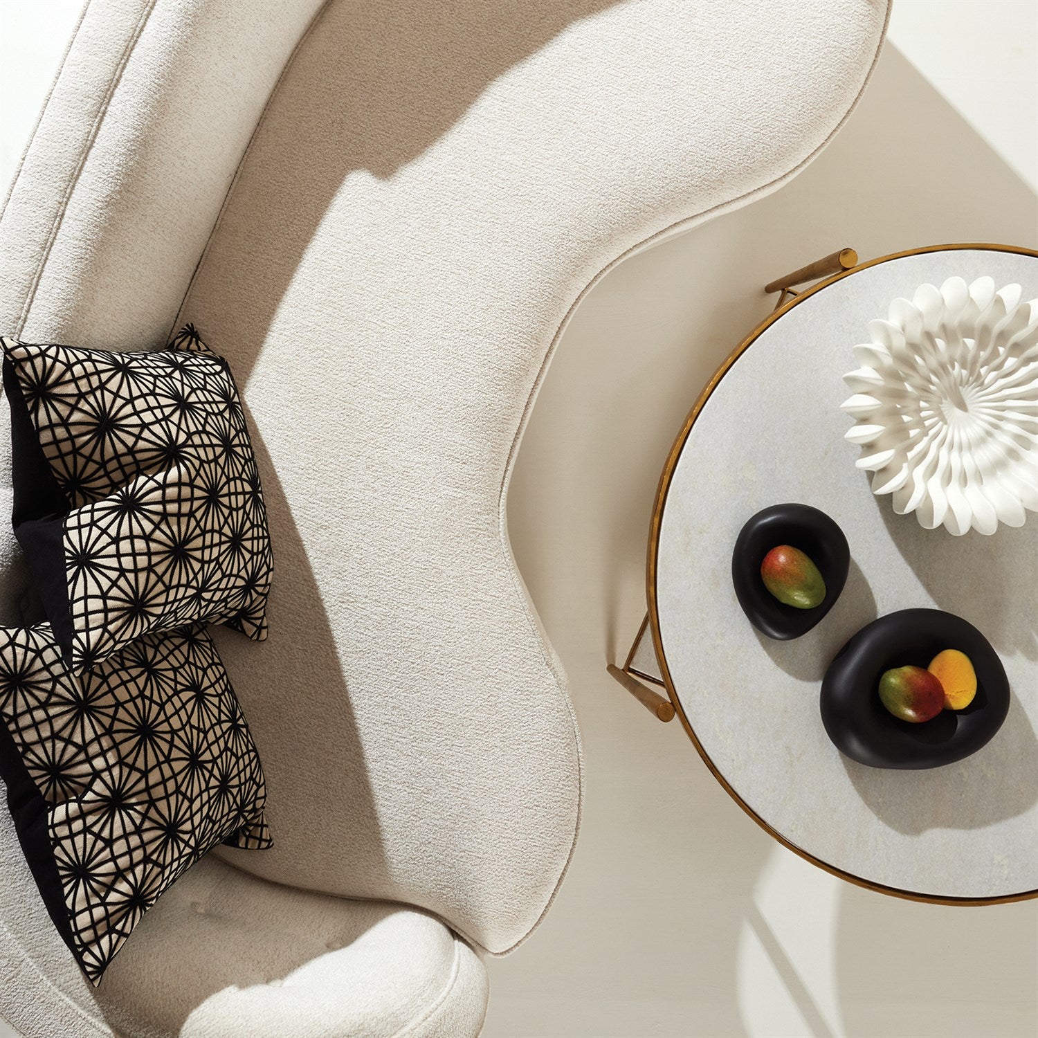 Circle/ Square Cocktail Table - Gold w/ White Marble