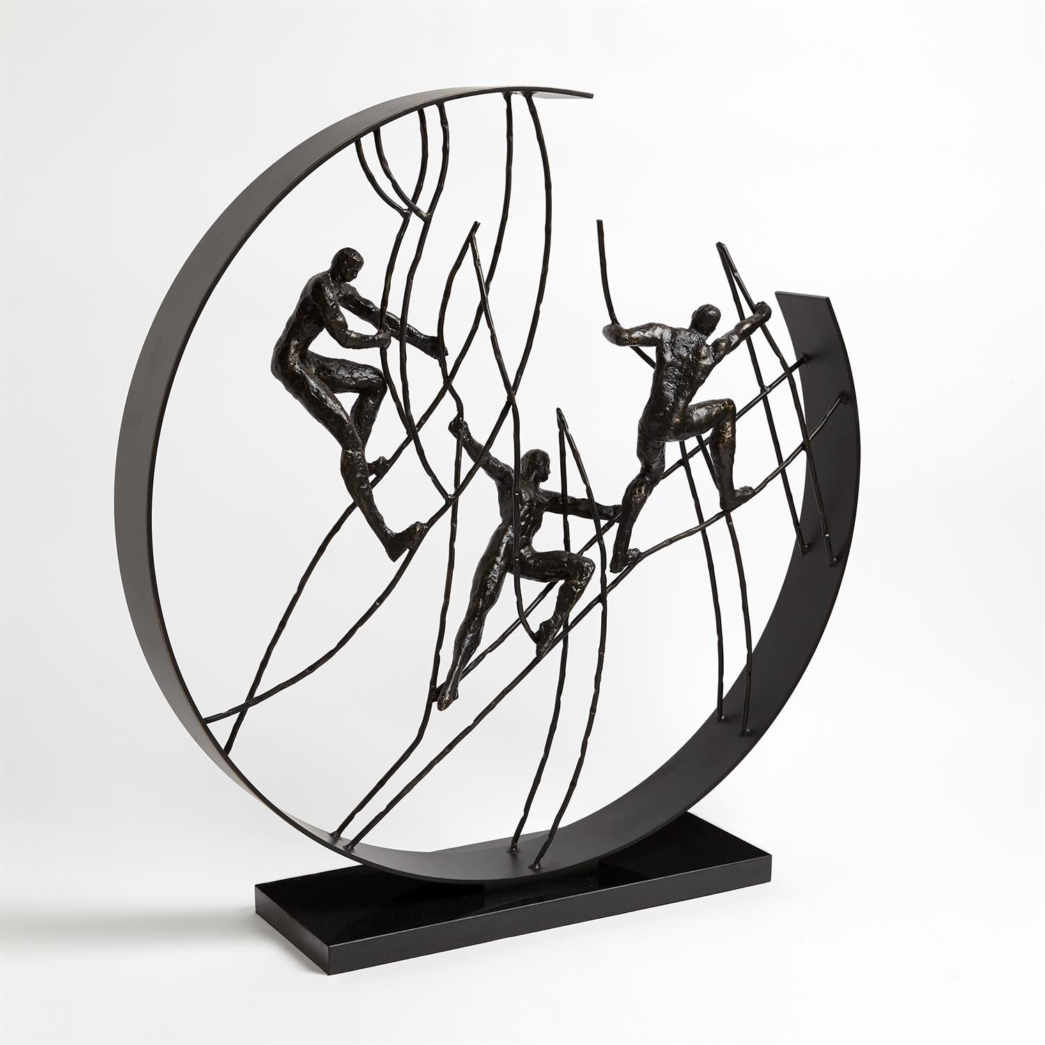 Climb to the Top can be a metaphor for your life or simply just a grand sculpture for your interior. Iron with a black granite base.
