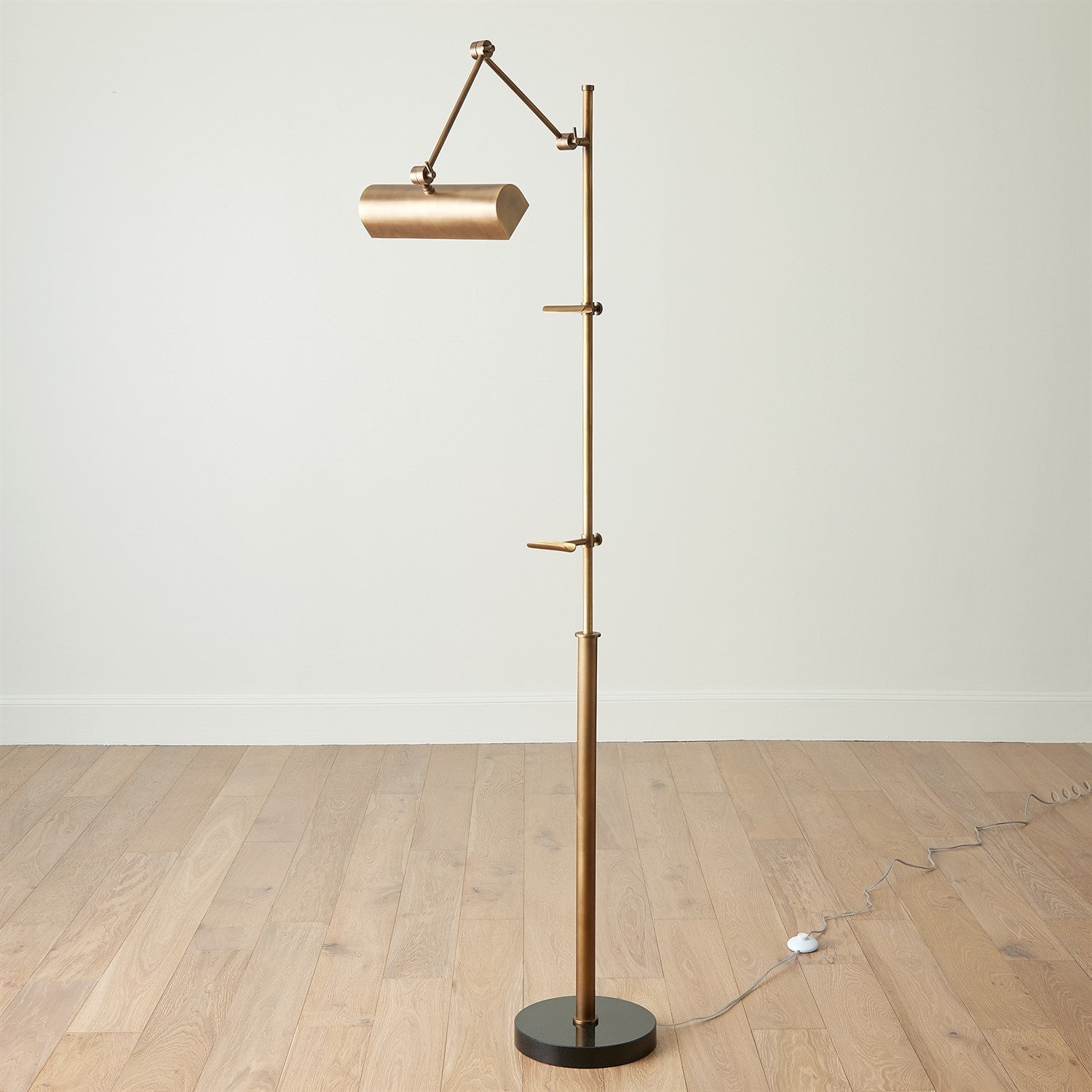 The Display Floor Lamp is designed to beautifully illuminate and showcase your favorite artwork or portrait. Handcrafted from brass with an Italian antique finish, it features a striking black granite base, combining elegance with functionality in any space.