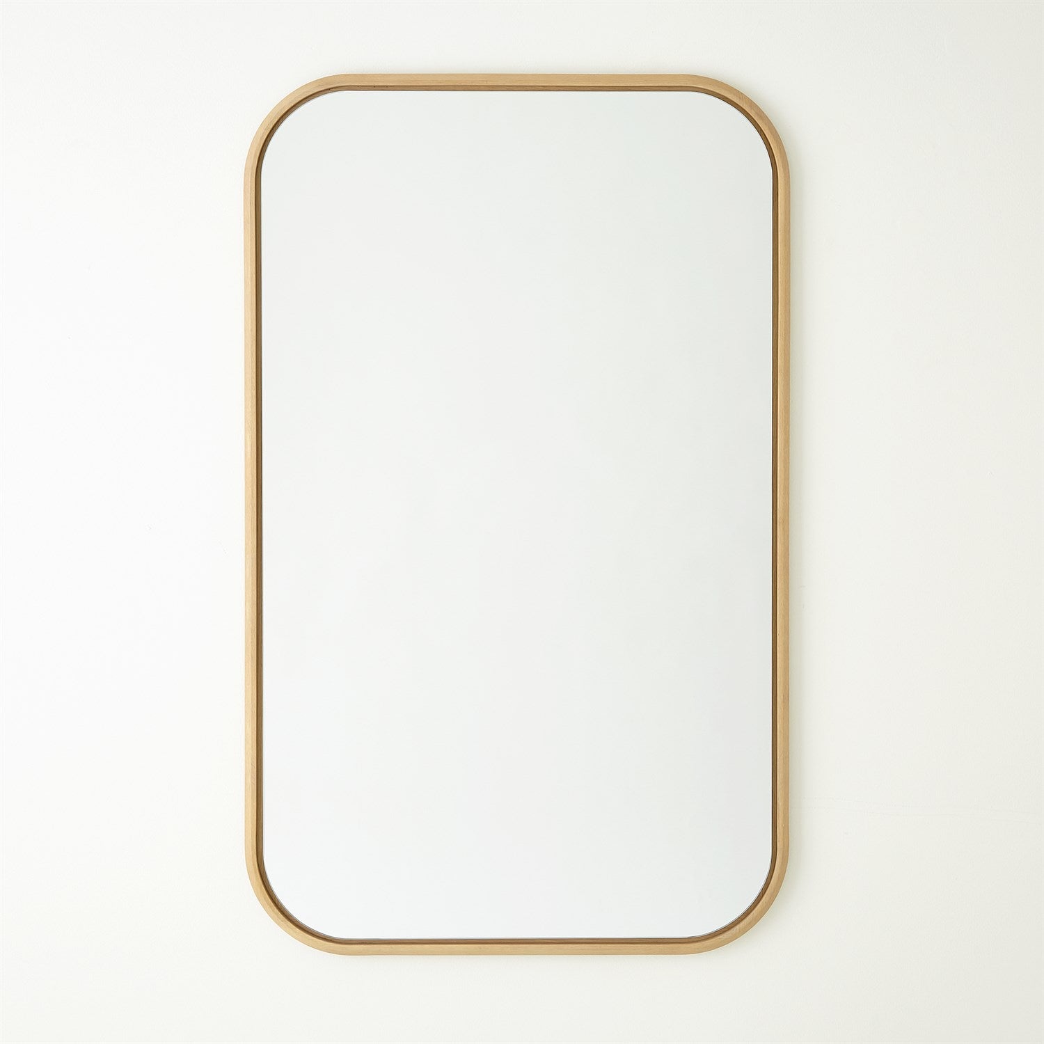 The soft curves, chamfered white oak edge, and elegant reveal make the Narkissos mirror as beautiful as its namesake. Can be hung vertically or horizontally. An elegant addition to any room.