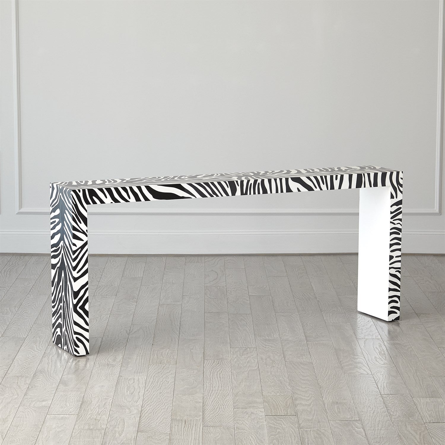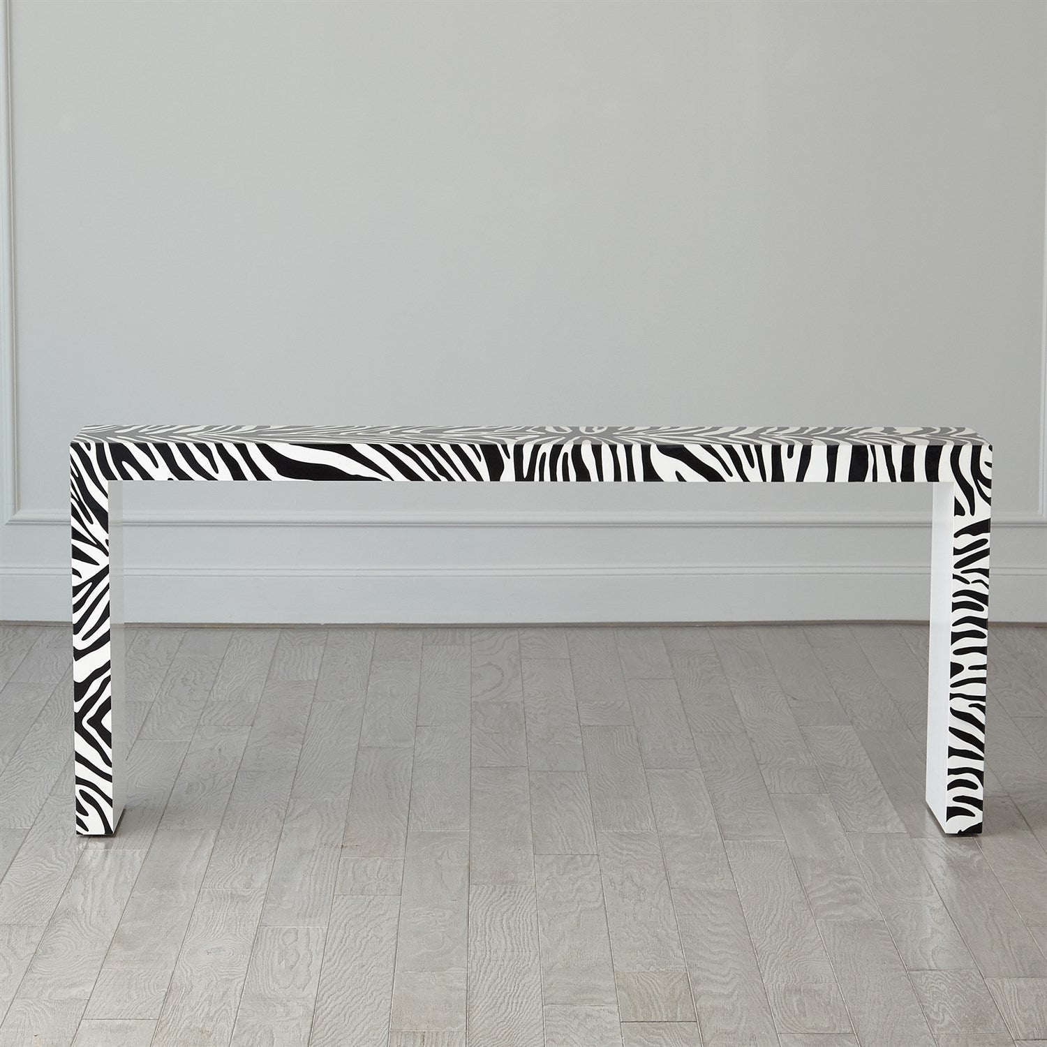 The Parson Table features a hand drawn zebra pattern by Creative Director George Sellers that’s been stenciled and lacquered to create a graphic black and white statement!