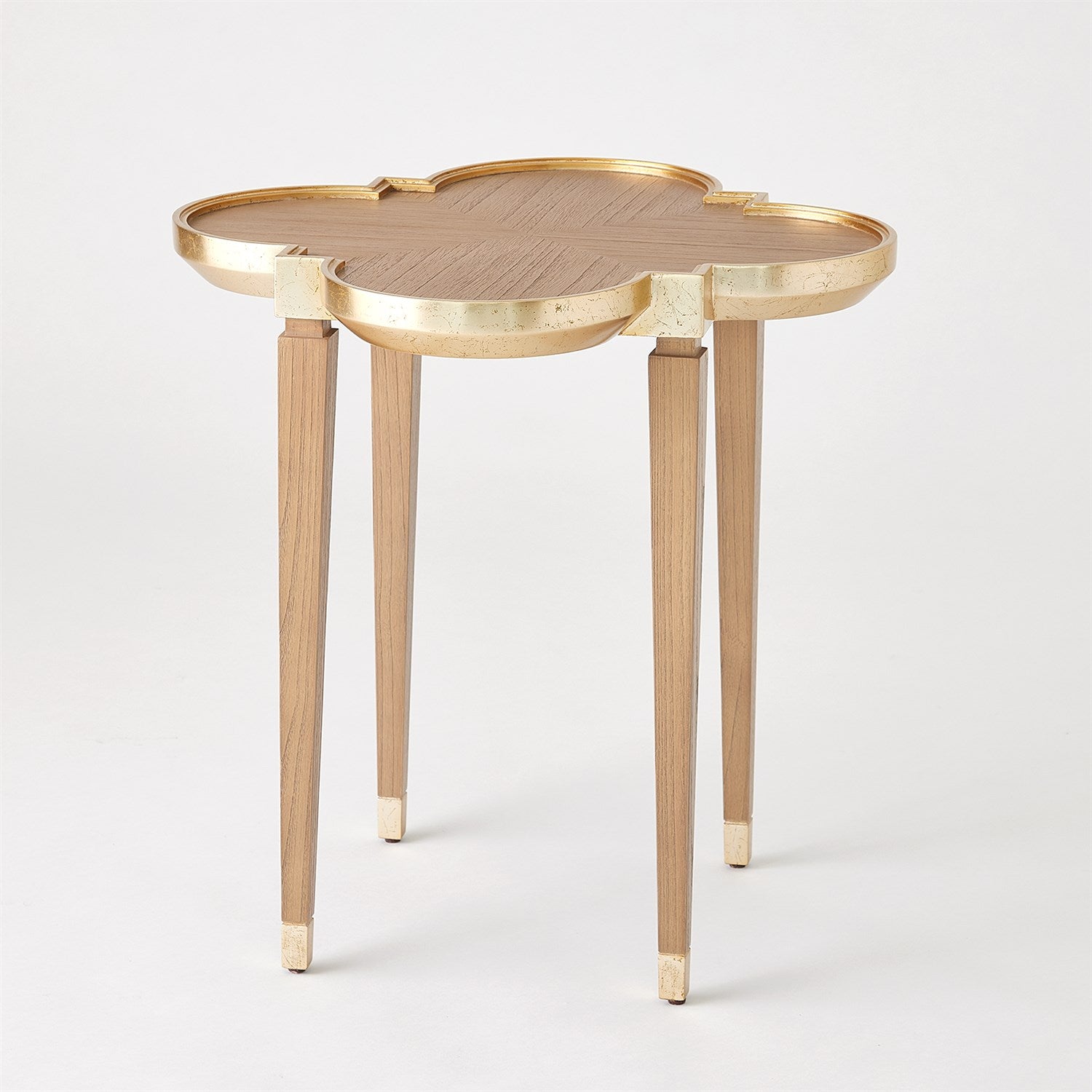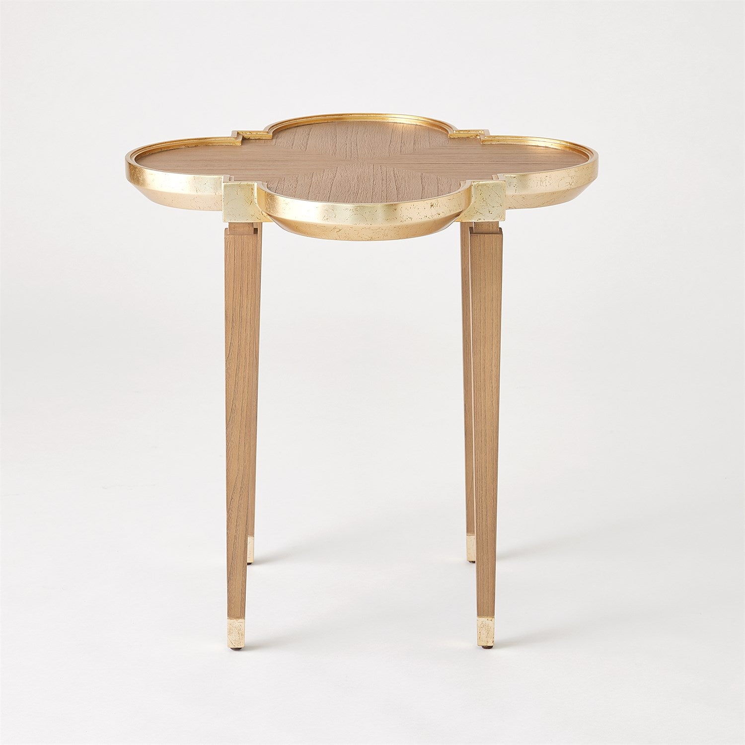 Experience the allure of our Quatrefoil Side Table, meticulously handcrafted from sustainably harvested Sungkai wood. Adorned with a nutmeg matte finish and Florence silver details, this table showcases the natural beauty of sungkai wood grain. Elevate your space with a touch of sustainable craftsmanship.