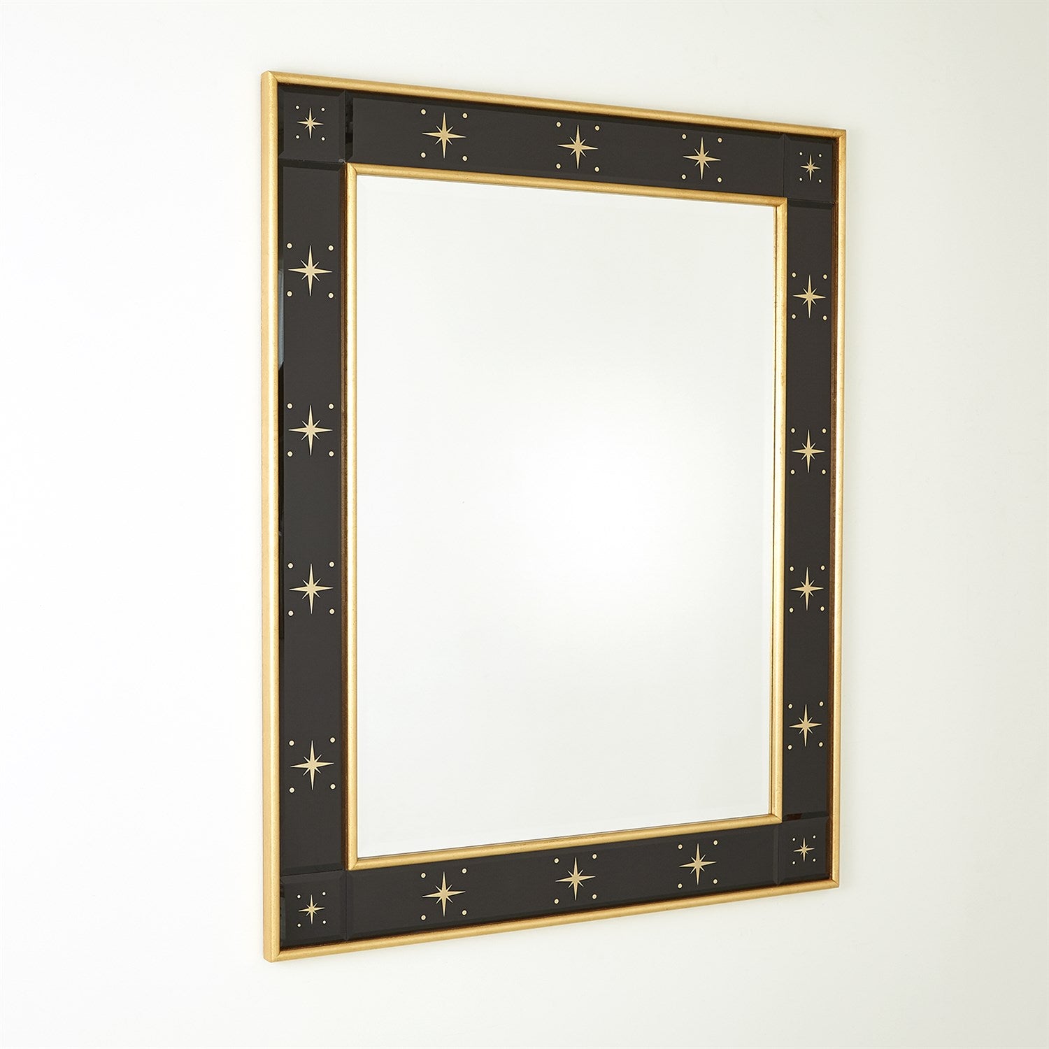 Rectangular Beveled Mirror w/Gold Stars - Black