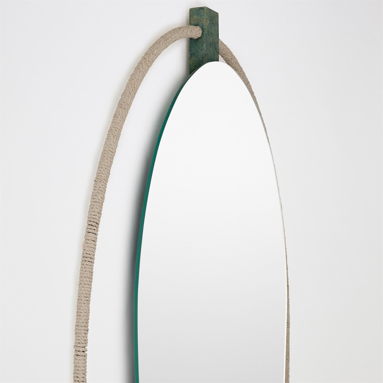 Inspired by its namesake beetle, the Scarab Mirror honors symbols of transformation, protection, and renewal long revered in desert cultures. Its form is defined by a jute cord-wrapped iron frame that traces the geometry of the scarab's wings, with accents of verdigris finished iron for warmth and balance. The scarab knows the secret of rebirth: what is buried in darkness will rise again in light.