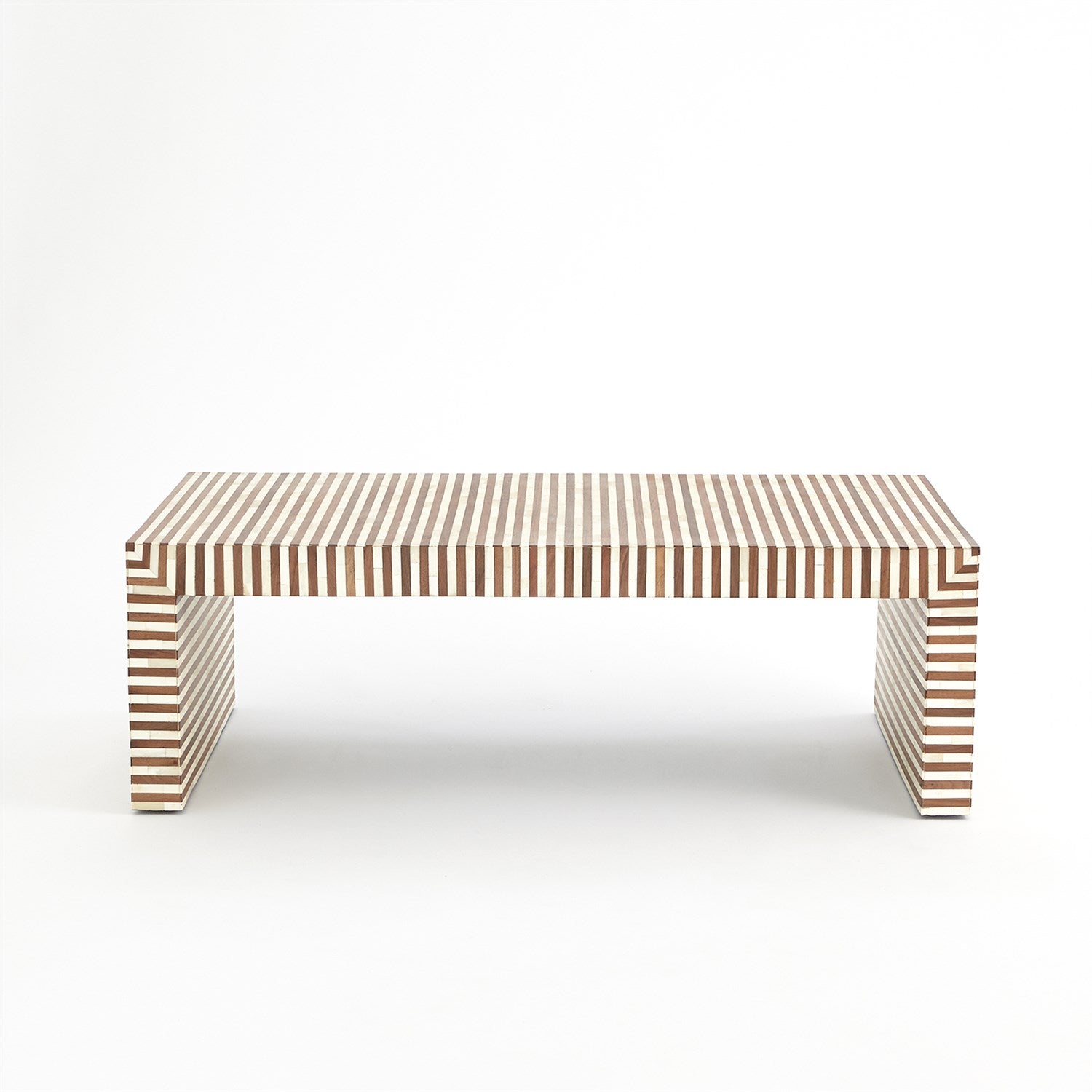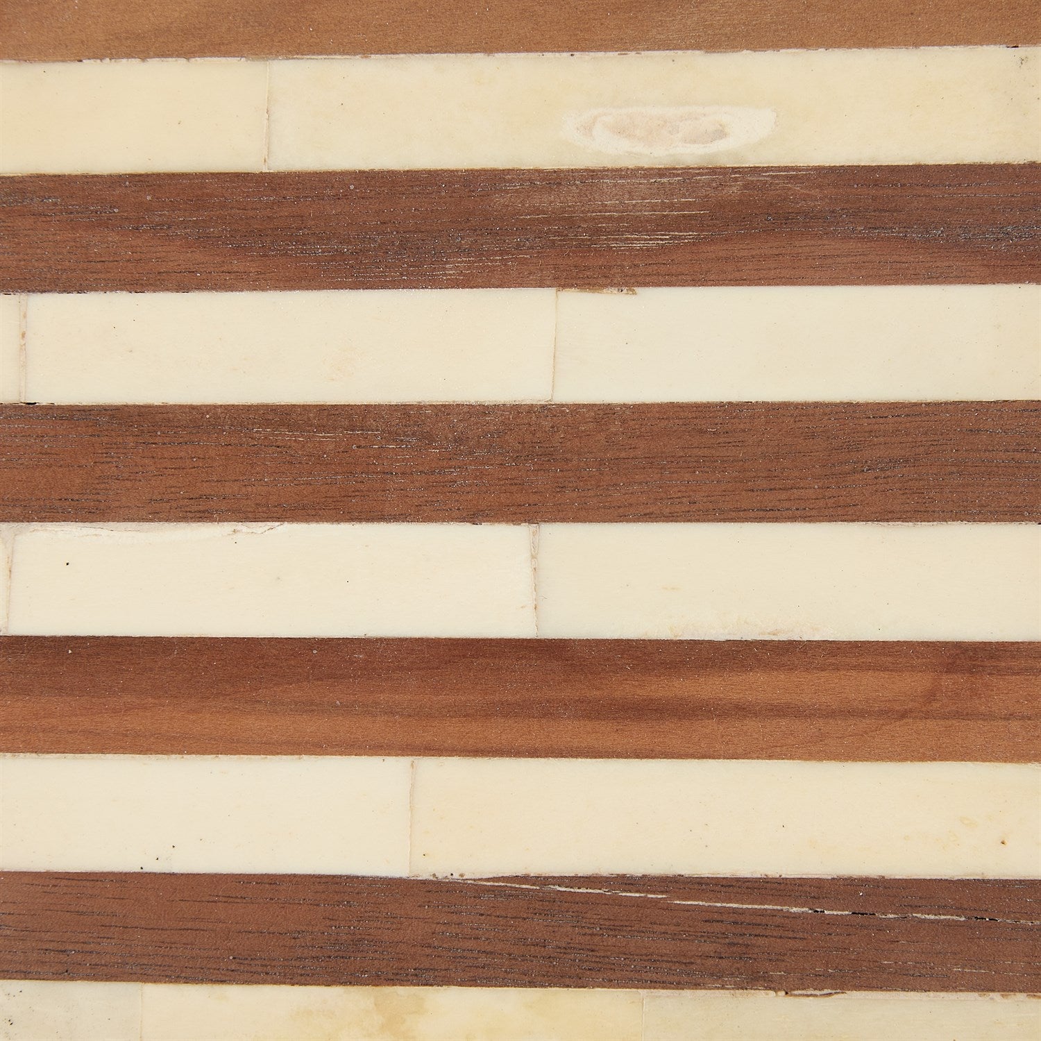 The Sienna Collection pattern is made by alternating walnut wood, bone, and mango wood. Natural lacquer finish.