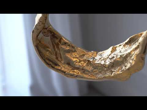 The Swirl Lamp is quite the statement piece with its organic cast aluminum shape and oversized rectangular shade. Brass-plated finish and white marble base.